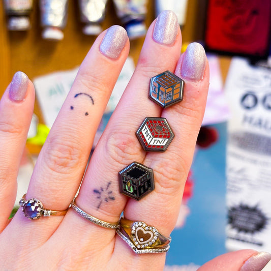 Mini Ender Chest, TNT Block and Crafting Table Biome Block Enamel Pins