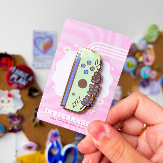 Green Floral JoyCon Enamel Pin | Nintendo Switch Enamel Pin Floral Joycon Pin