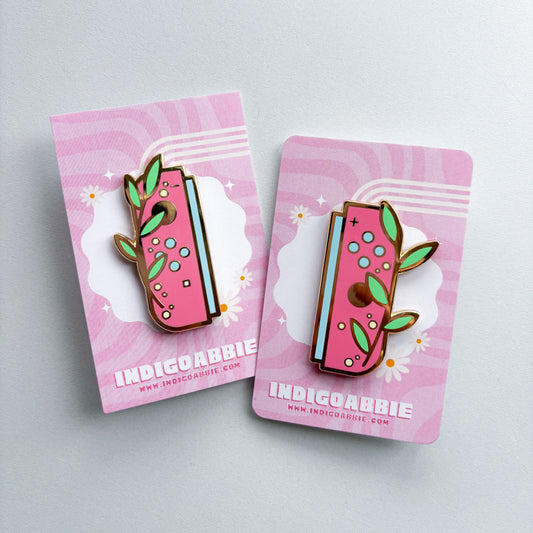 Pink Floral JoyCon Enamel Pin | Nintendo Switch Enamel Pin Floral Joycon Pin