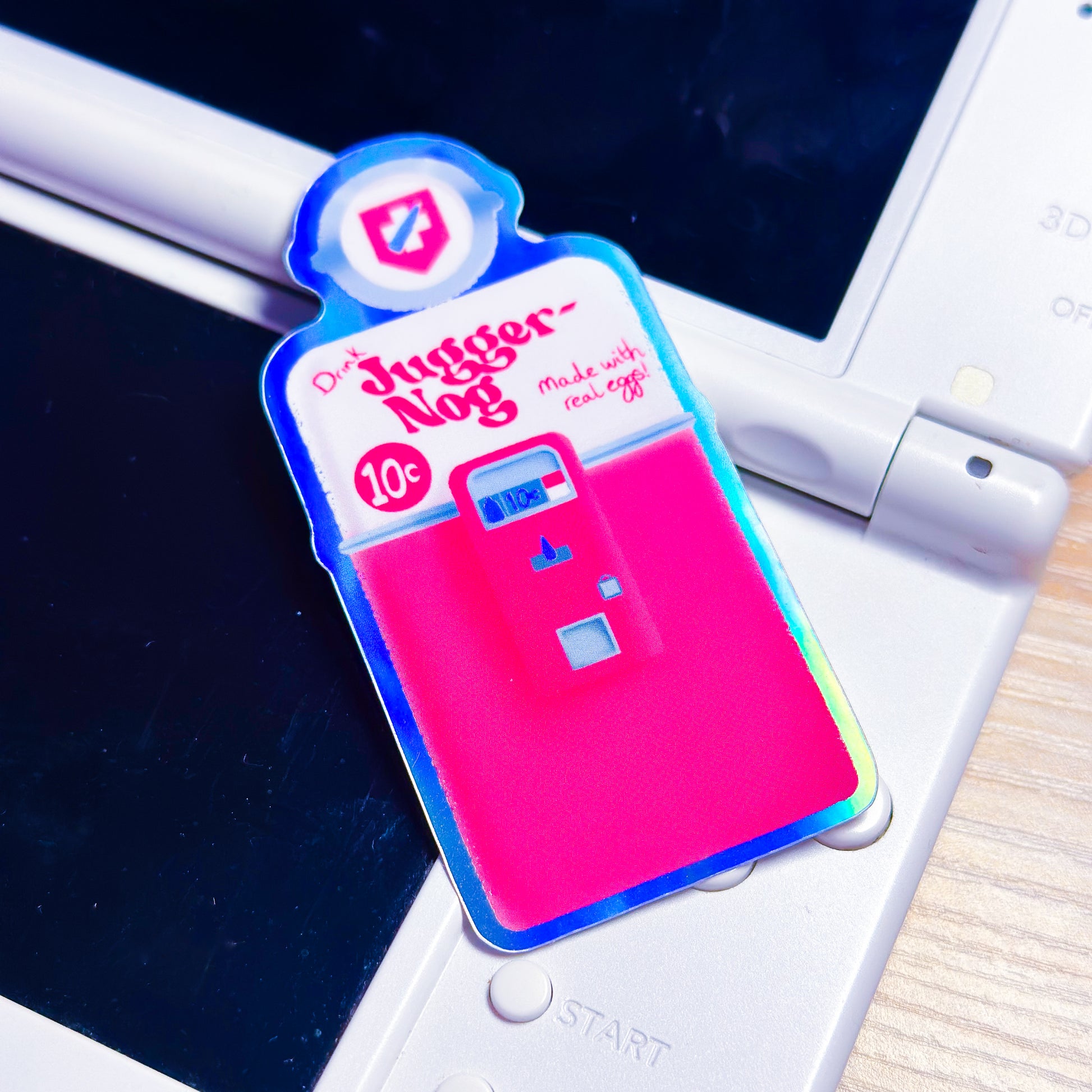 this holographic sticker features Call of Duty Juggernaut. fully waterproof, durable, and 3 inches on the longest side, it’s a nostalgic little pop of colour for your switch, water bottle, or laptop. it’s giving ict class :)